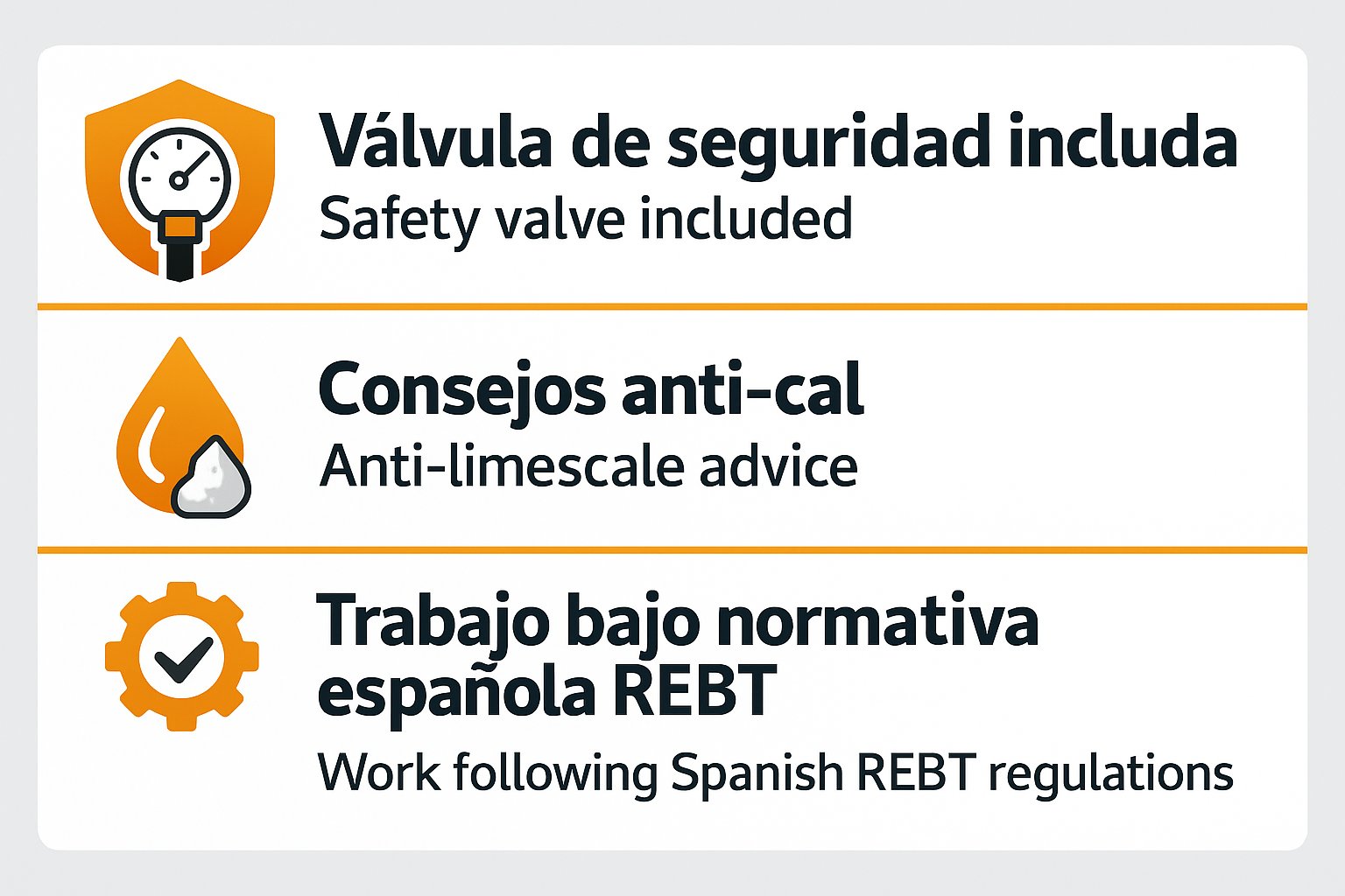 Instalación del termo (cliente aporta el termo) Installation only (customer provides heater) Desde 135€ + I.V.A